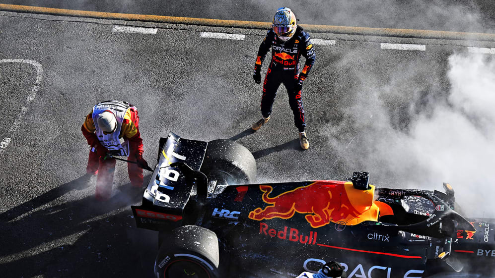 El actual campeón del mundo, Max Verstappen, estaba segundo detrás de Leclerc cuando su RB18 se detuvo durante su vuelta 39 envuelto en una nube de humo, en el segundo abandono esta temporada del neerlandés que penaliza sus opciones para revalidar el título.