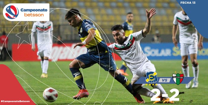 Esye jueves fue el cierre de la decimotercera fecha del Campeonato de Primera A del fútbol chileno y Everton y Palestino repartieron unidades tras empatar 2-2, en el Estado Sausalito de Viña del Mar.