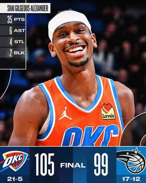 El Thunder se impuso 105-99 sobre Orlando Magic, resistiendo un intento de remontada por parte de los Magic en el cuarto periodo. Shai Gilgeous-Alexander fue la estrella del partido al anotar 35 puntos, mientras que Jalen Williams sumó seis puntos cruciales en un momento decisivo que ayudó a mantener la ventaja del Thunder. A pesar de los esfuerzos de Anthony Black, quien igualó su récord personal con 23 puntos, el Magic no logró concretar su remontada y acumulan su tercera derrota consecutiva.