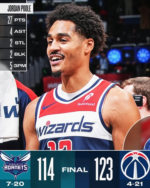 Los Wizards lograron una victoria crucial al vencer a los Hornets 123-114, rompiendo una racha de tres derrotas consecutivas. Jordan Poole fue el máximo anotador del encuentro con 27 puntos, mientras que Malcolm Brogdon, en su regreso tras una lesión, contribuyó con 25 puntos. El equipo de Washington, que ha tenido un inicio de temporada complicado con solo dos victorias en 21 partidos, mostró una mejoría notable, liderando en toda la última parte del juego. Por el lado de los Hornets, LaMelo Ball se destacó con 34 puntos y 13 asistencias, pero su bajo porcentaje en tiros de tres puntos, sumado a la ausencia de Brandon Miller, afectó negativamente el rendimiento del equipo.