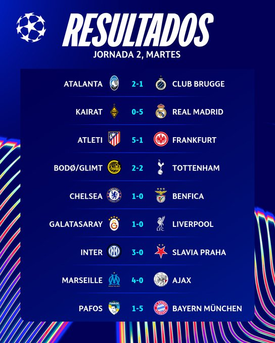 El comienzo de la jornada 2 llegó repleto de goles, destacando las grandes actuaciones del Real Madrid, Atleti, Bayern y Marseille. El Inter también ganó con solvencia y suma seis puntos tras dos jornadas al igual que Madrid y Bayern. Resumimos toda la acción de los partidos de hoy.