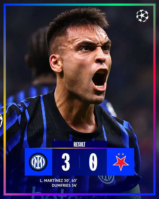 El Inter mantiene su pleno de victorias tras un cómodo triunfo sobre el Slavia Praha en San Siro. El equipo italiano llamó a la puerta del gol en los primeros compases y Lautaro Martínez acabó rompiendo el empate a la media hora.