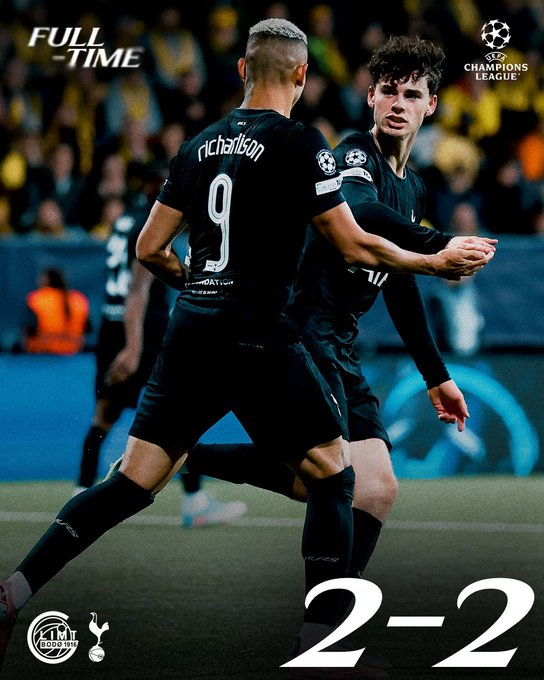 Sí acertaron tras el descanso con un impresionante doblete de Jens Petter Hauge. Sin embargo, el Tottenham respondió rápidamente para mantenerse en el partido. Un cabezazo de Micky van de Ven inyectó confianza a los visitantes y, tras un periodo de presión, Jostein Gundersen aprovechó el rebote tras un disparo de Archie Gray para marcar el empate en los últimos instantes. Jugador del Partido: Jens Peter Hauge (Bodø/Glimt)