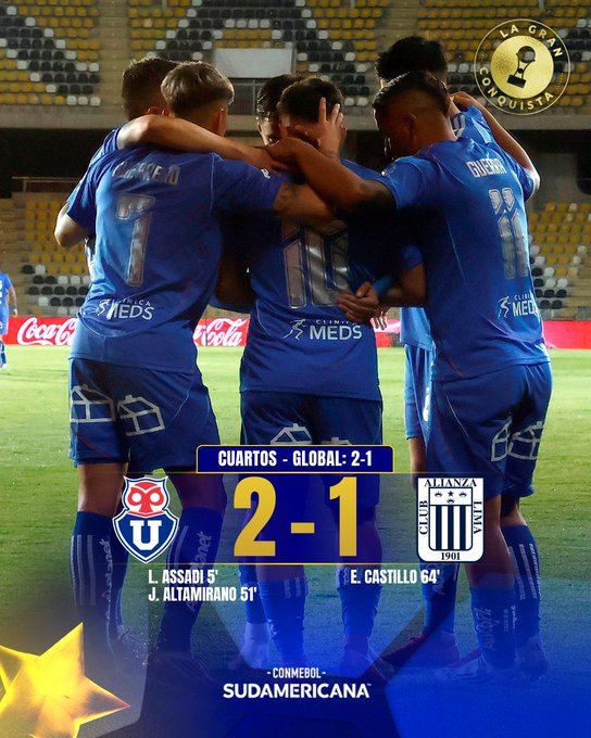 Universidad de Chile venció 2-1 a Alianza Lima en el compromiso de vuelta de cuartos de final de la Copa Sudamericana, disputado en el estadio Francisco Sánchez Rumoroso de Coquimbo y que determinará al último clasificado a las semifinales.