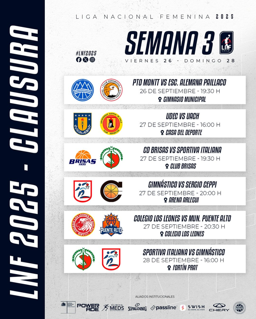 La Liga Nacional Femenina retorna este viernes en el Gimnasio Municipal Mario Marchant cuando Puerto Montt Básquetbol reciba la visita de la Escuela Alemana de Paillaco, a contar de las 19.30 horas, por la segunda fecha del campeonato.
