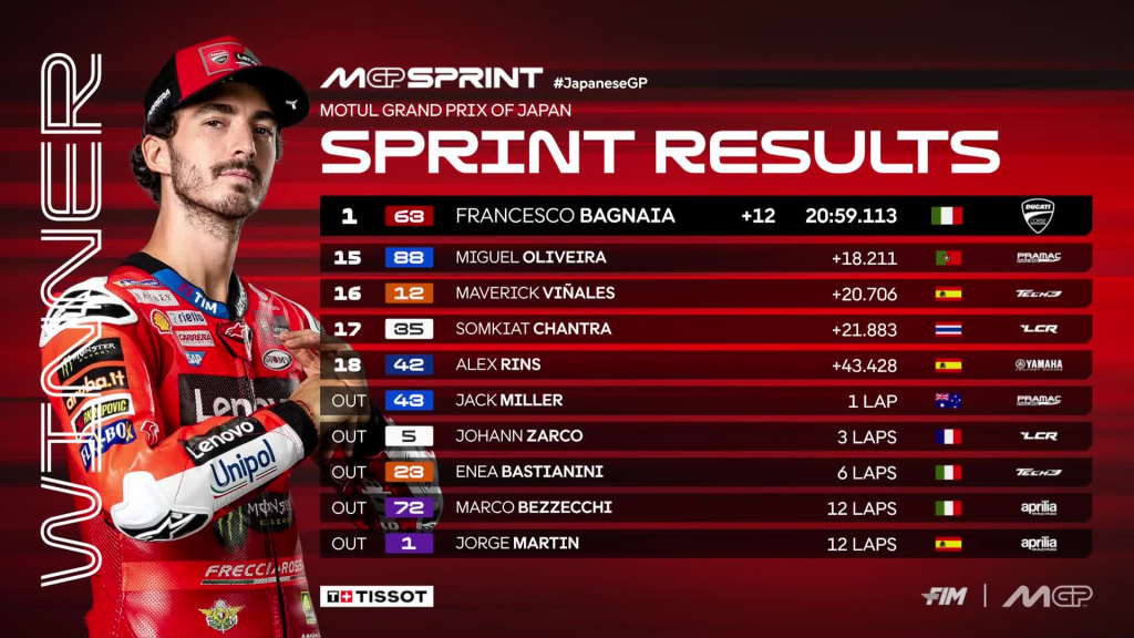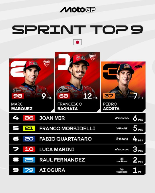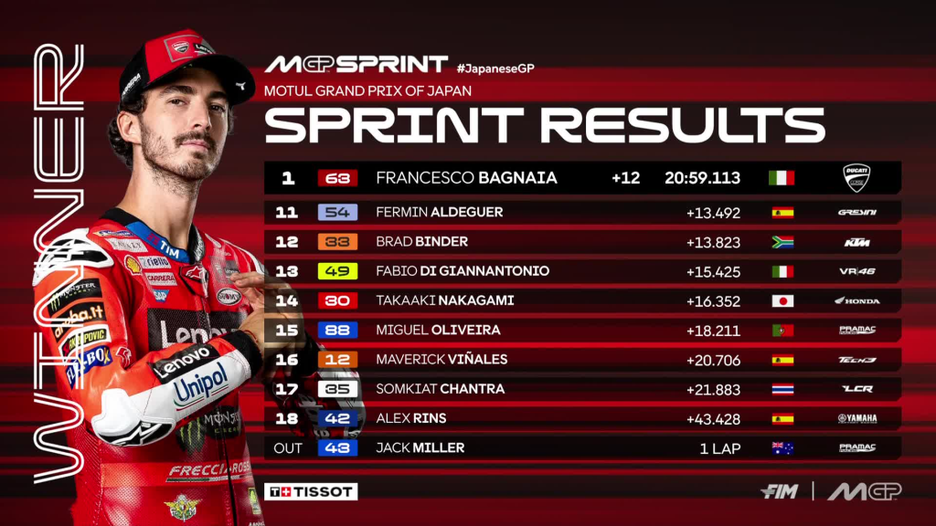 Así queda la clasificación de MotoGP tras la Sprint del GP de Japón