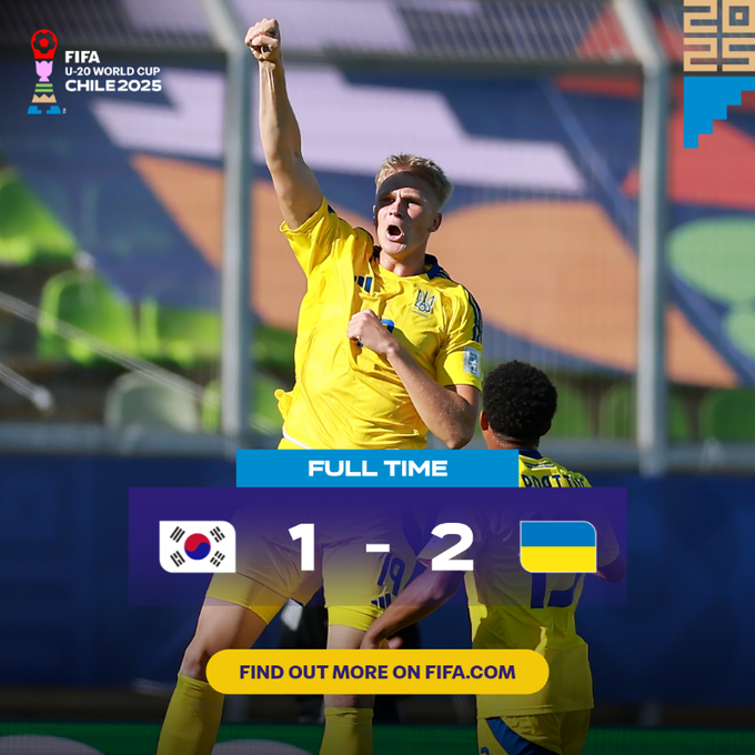 Dos goles en cuatro minutos de la primera parte bastaron a Ucrania para imponerse a la República de Corea por 2 a 1en su primer partido del grupo disputado en Valparaíso.