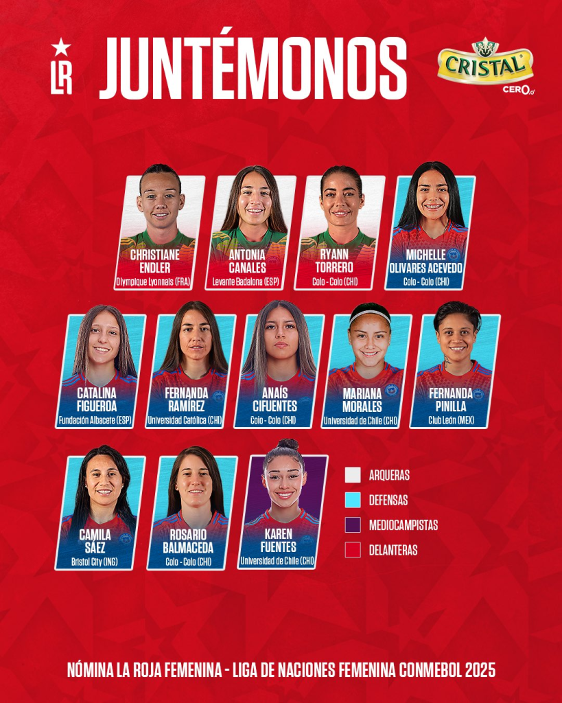 Esta mañana de martes se entregó la nómina confirmada de Selección Chilena Femenina para las fechas 1 y 2 de la Liga de Naciones Femenina CONMEBOL 2025-26.