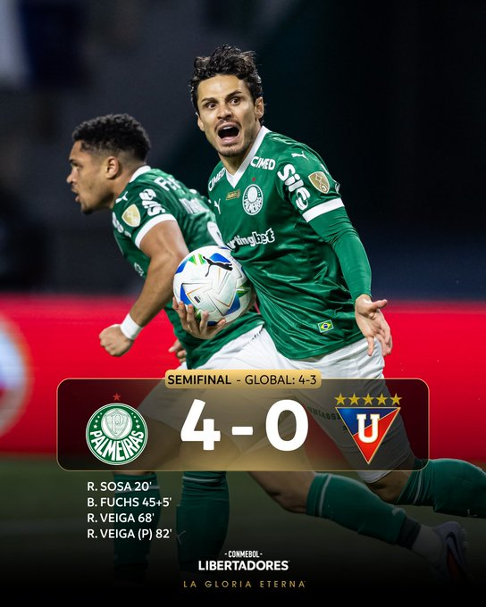 El Verdão dio vuelta la serie, goleando 4-0 a La Liga de Quito tras haber perdido 3-0 en la ida y la fuerza de Allianz Parque fue fundamental para que el equipo de Abel Ferreira regrese a otra final continental.