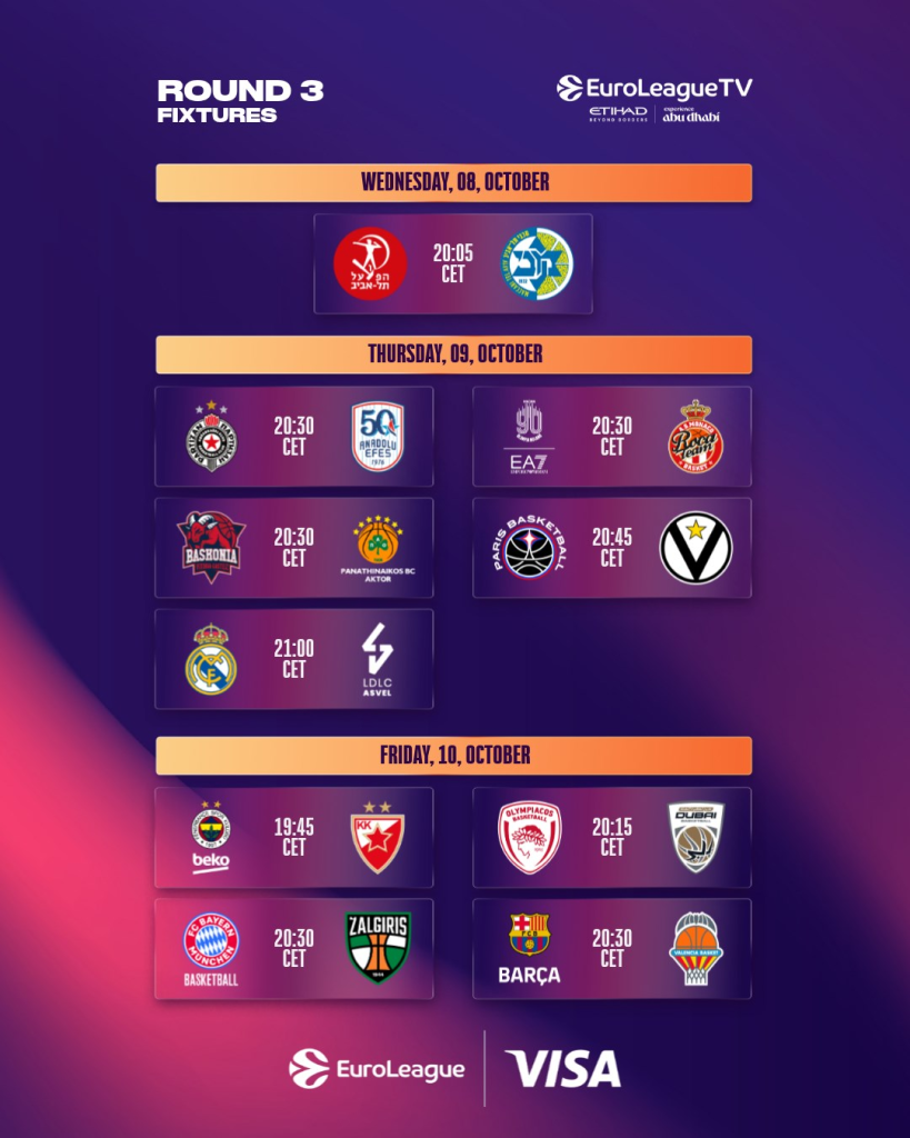 Con un partido hoy miércoles comenzó la segunda semana de la Euroliga, correspondiente a la tercera fecha de la fase regular que continuara con otros cinco este jueves y cuatro mas el viernes. Repasemos lo ocurrido hoy miércoles, 8 de octubre