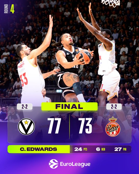 El Virtus dominó durante toda la segunda mitad y puso fin a una racha de dos derrotas consecutivas al vencer al Mónaco por 77-73 en el PalaDozza. El equipo de Dusko Ivanovic tomó el control del partido al comienzo del último cuarto, logrando su primera ventaja de dos dígitos y posteriormente abriéndose por 13, pero una remontada tardía del Mónaco puso nerviosos a los locales. Sin embargo, un par de tiros libres de Carsen Edwards y uno de Alessandro Pajola fueron suficientes para que Virtus lograra su segunda victoria de la temporada. Ambos equipos ahora tienen un récord de 2-2.