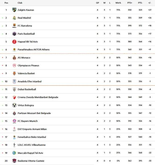 Venció de local 105-87 al Baskonia con 18 minutos del chileno y es uno de los punteros del torneo tras cuatro jornadas. Revisamos resultados de hoy.