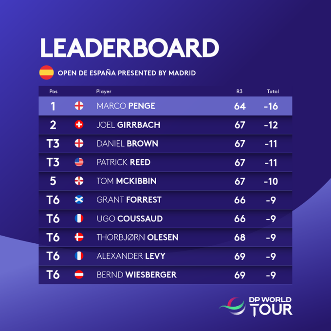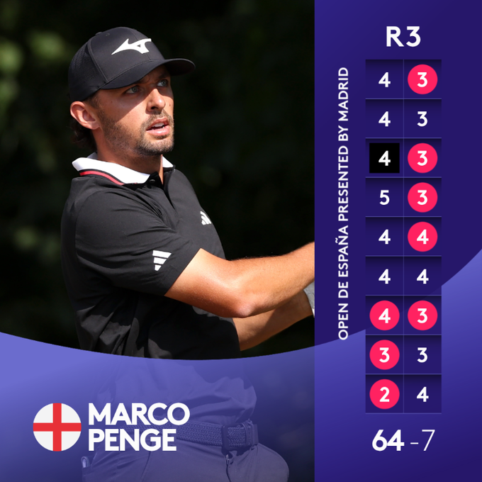 En lo más alto del tablero se mantiene el nombre del inglés Marco Penge, que ahora domina la competencia con un acumulado de -16 y cuatro de ventaja sobre el segundo puesto.
