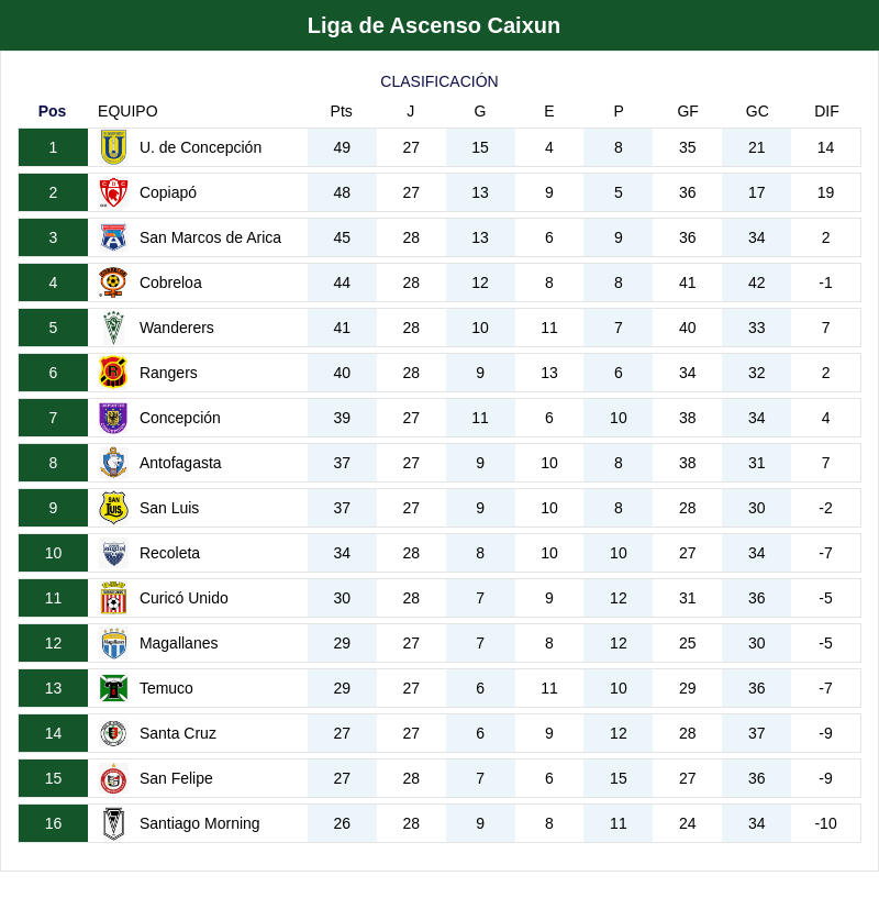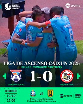 Dos duelos se disputaron este sábado por la Liga de Ascenso y sobre el césped del mundialista «Carlos Dittborn», San Marcos de Arica venció por 1-0 a Unión San Felipe en un duelo que tuvo consecuencias en ambos extremos de la Liga que desarrolla su fecha 28.