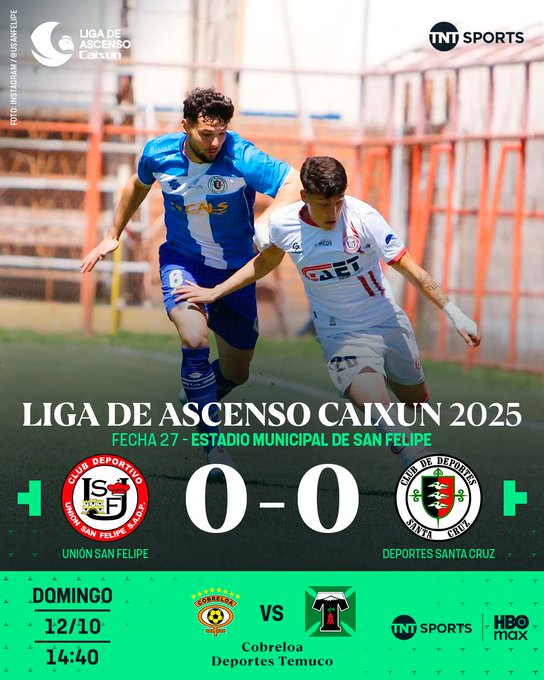 En tanto, Unión San Felipe no logró aprovechar la localía y solo rescató un empate sin goles frente a Deportes Santa Cruz, en compromiso válido por la fecha 27, resultado especialmente negativo para ambos equipos, que llegaban urgidos de puntos para escapar de la parte baja de la tabla.