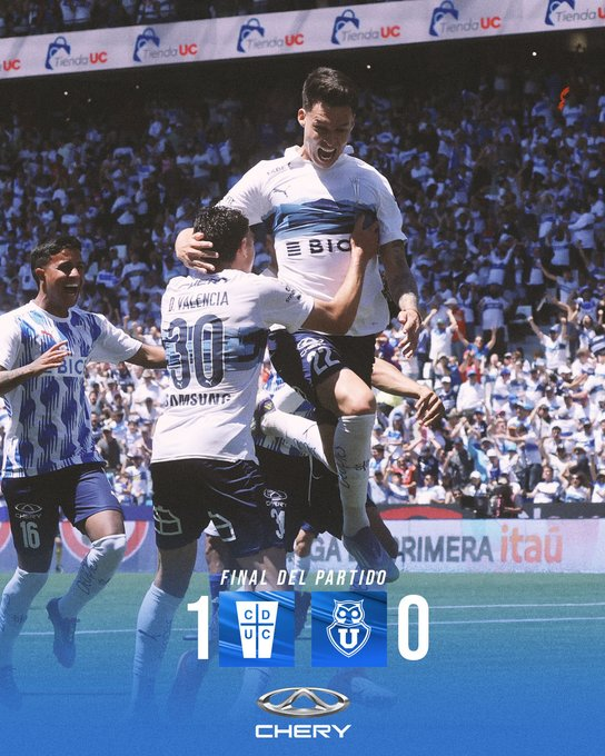 Además si el partido terminaba empatado, se abría la posibilidad de que esta misma tarde Coquimbo Unido lograra su primer título en Primera División de vencer a O’Higgins en Rancagua, pero todo terminó siendo para la Católica porque venció 1-0, en su estadio, a su más enconado adversario y, encima, con un jugador menos casi todo el segundo tiempo.