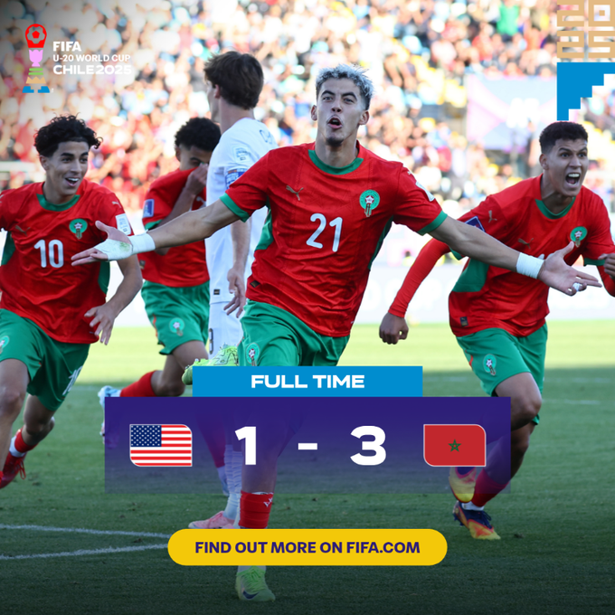 Dos goles en el segundo tiempo fueron decisivos para que Marruecos venciera a Estados Unidos y avanzara a las semifinales de la Copa Mundial Sub-20 de la FIFA Chile 2025.