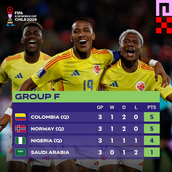 Colombia fue el líder de grupo F en tanto Noruega y Nigeria avanzan y con ello se terminaron de definir los octavos de final del torneo.