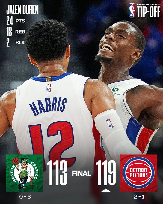 Detroit aprovechó el mal momento de Boston y se impuso como local. Jalen Duren dominó la pintura con 24 puntos y 18 rebotes. En los Celtics, Jaylen Brown brilló con 41 tantos y 6 rebotes, aunque no fue suficiente.