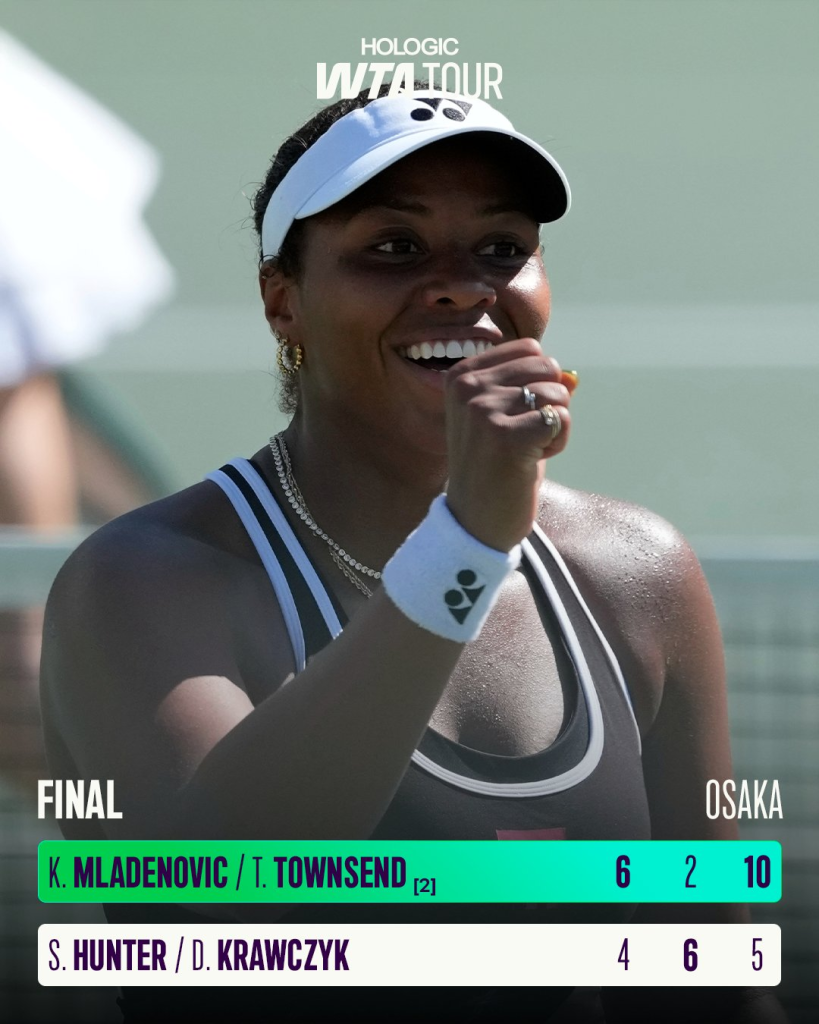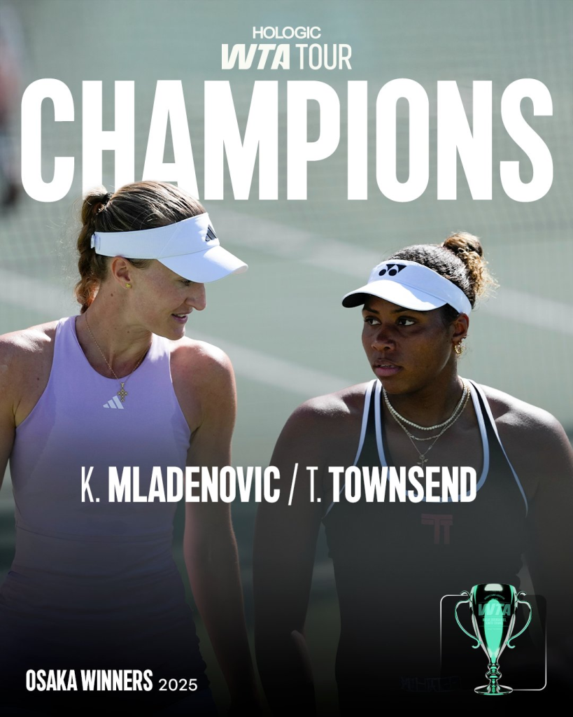 Por su parte la estadounidense Taylor Townsend y la francesa Kristina Mladenovic acaban de ser campeonas de dobles en el Torneo de Osaka este 18 de octubre de 2025, derrotando a la pareja formada por la australiana Storm Hunter y la estadounidense Desirae Krawczyk.