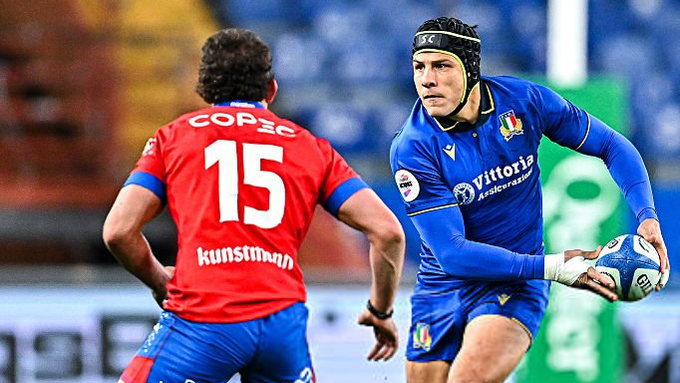 La azzurra logró llegar al in goal gracias a Ange Capuozzo luego de una gran lectura de espacios del back italiano, donde el otro ensayo fue gracias al hooker Tomasso Di Bartalomeo, a través del line y maul, arma dificil de frenar por parte de los chilenos.