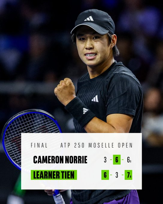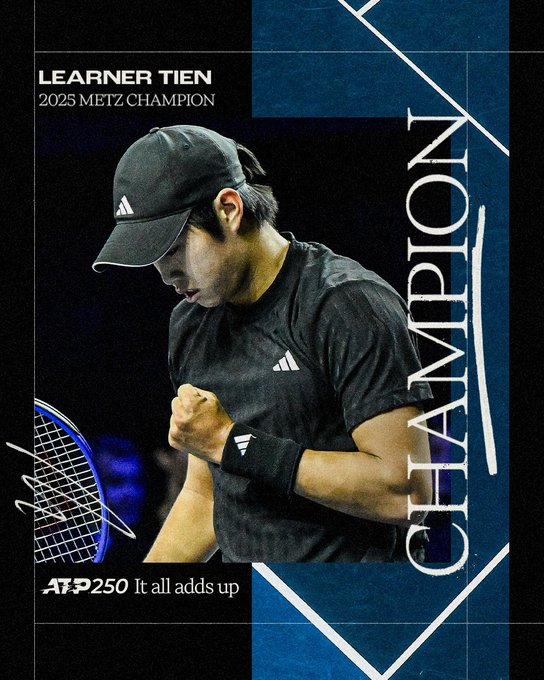 Este sábado en Metz, Learner Tien impactó fuerte. A los 19 años, se une a Novak Djokovic (ganador en Metz en 2006 también con 19 años) entre los campeones más jóvenes del torneo.