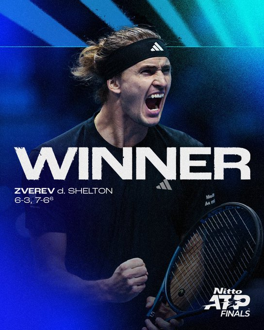 En la sesión nocturna, Alexander Zverev recordó por qué ha sido dos veces campeón de las ATP Finals. Con un tenis controlado y un servicio implacable, derrotó al debutante Ben Shelton (6-3, 7-6 [6]) en poco más de hora y media, sin conceder una sola bola de break.