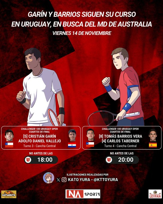 Por su parte Marcelo Tomás Barrios (111°) sigue extendiendo su racha y es que tras consagrarse campeón la semana pasada en Lima, ahora el chileno avanzó a los cuartos de final del Challenger de Montevideo, en Uruguay, y sumó su séptima victoria consecutiva.
