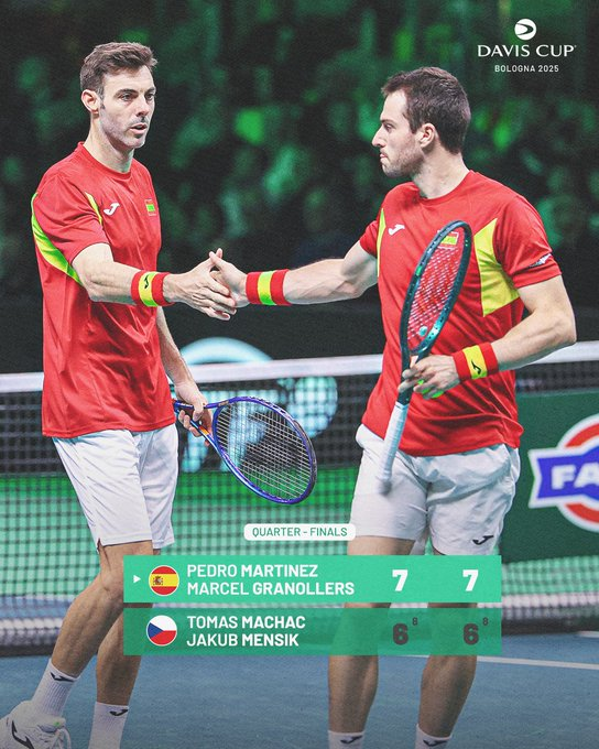 El doble formado por Marcel Granollers y Pedro Martínez obraron otra proeza, pues dieron el punto decisivo tras tumbar a Tomas Machac y Jakub Mensik, por 7-6(8) y 7-6(8). Tomas Berdych sustituyó a última hora al doblista Adam Pavlasek por Mensik y este no dio la talla. Acabó con una doble falta que le perseguirá durante tiempo.