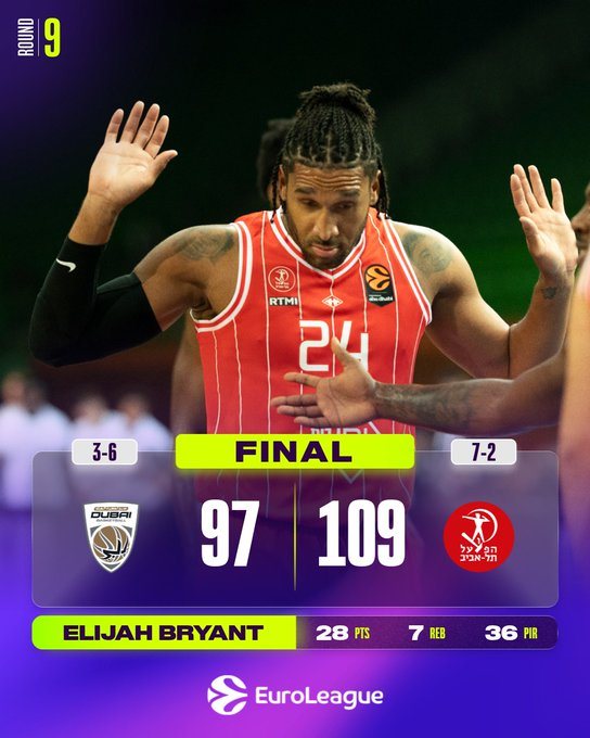 El Hapoel IBI Tel Aviv protagonizó un magnífico tercer cuarto en su victoria a domicilio por 97-109 sobre Dubai Basketball, mejorando su récord a 7-2. Elijah Bryant acumuló 25 puntos y 7 rebotes para liderar a los visitantes en el pabellón ZETRA de Sarajevo. Vasilije Micic anotó 19 puntos, mientras que Johnathan y Antonio Blakeney aportaron 15 cada uno para el Hapoel, que dio la vuelta al partido tras ganar el tercer cuarto 19-35. Dwayne Bacon brilló para Dubai con 36 puntos.