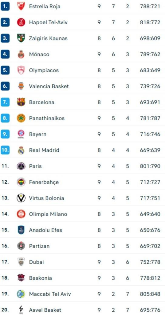 Mónaco, Bayern y Hapoel consiguen victorias a domicilio, Fenerbahçe y Baskonia triunfan también en jornada de jueves-
