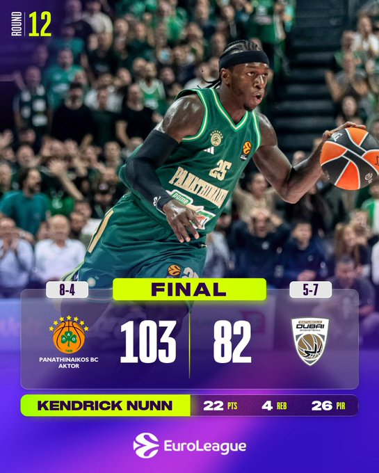 El Panathinaikos consiguió su tercera victoria consecutiva al aplastar al Dubai por 103-82 en el Telekom Center Atenas el jueves por la noche. Un primer tiempo muy disputado vio a los visitantes tomar una ventaja de 45-48 al descanso, pero los Verdes reforzaron su defensa y cerraron el tercer cuarto con una racha de 16-1 para establecer una ventaja de dos dígitos que mantuvieron hasta el pitido final. El Panathinaikos mejoró su récord a 8-4, mientras que el Dubai cayó a 5-7.