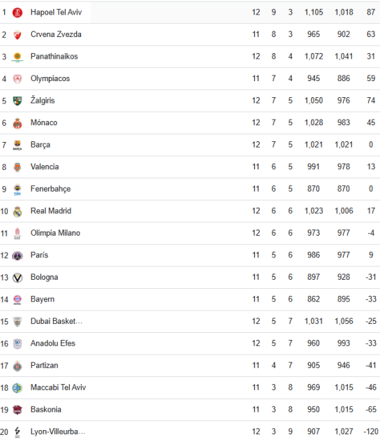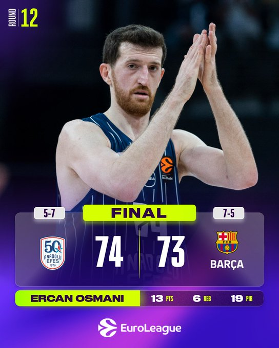 A pesar de las lesiones, el Efes ha conseguido ganar dos partidos seguidos tras una racha de tres derrotas, mejorando su balance a 5-7. Cordinier lideró a cinco anotadores del Efes con 14 puntos, mientras que Ercan Osmani anotó 13 y Brice Dessert logró su mejor marca personal con 12 puntos. El Barcelona, que recuperó a Pascual tras nueve años de ausencia, había ganado cuatro de sus últimos cinco partidos, pero cayó a una marca de 7-5 a pesar de los 16 puntos y 8 rebotes de Jan Vesely.