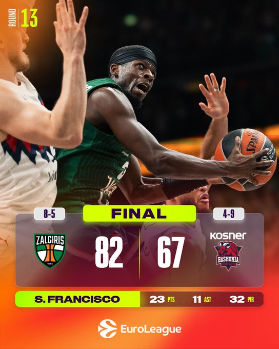 Sylvain Francisco brilló con 23 puntos y 11 asistencias para el Zalgiris, Azuolas Tubelis aportó 15 puntos y 6 rebotes, mientras que Ignas Brazdeikis anotó 13 puntos. Timothe Luwawu-Cabarrot lideró al Baskonia con 18 puntos y Kobi Simmons anotó 12.