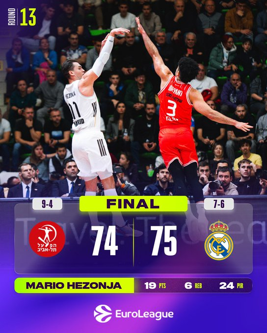 A continuación, hubo una racha de rachas en el tercer cuarto, con los visitantes manteniendo una ventaja de 58-60. Las defensas tomaron el control en el último cuarto y los Blancos tuvieron la precisión suficiente para conseguir su segunda victoria a domicilio esta temporada. El Real Madrid mejoró su récord a 7-6, mientras que el Hapoel bajó a 9-4.