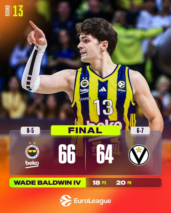 Wade Baldwin fue el jugador más destacado con 18 puntos que llevaron a su equipo a la victoria. Devon Hall lo respaldó con 9 puntos, todos anotados desde la línea de tres puntos. El resultado fue duro para Matthew Morgan, del Bolonia, quien aportó 13 puntos desde el banquillo. Este resultado completa un noviembre perfecto e invicto para el Fenerbahçe, que ahora tiene un balance de 8-5 en la Euroliga. El récord del Virtus cae a 6-7.