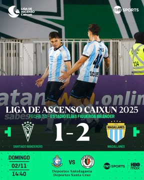 En tanto de manera sorpresiva en el otro duelo sabatino, como local Santiago Wanderers perdió 2-1 frente a Magallanes en el estadio Elías Figueroa Brander e hipotecó gran parte de sus opciones de clasificar a la liguilla, dependiendo ahora de otros resultados para mantenerse en la postemporada.