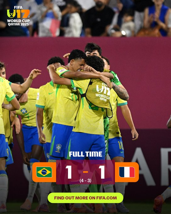 Brasil se clasificó para los cuartos de final tras una dramática victoria en la tanda de penaltis contra Francia. Les Bleuets se adelantaron cuando Joao Pedro derribó a Abdoulaye Camara en el área, y aunque el portero brasileño, que fue el héroe de la tanda de penaltis contra Paraguay en el último partido, detuvo el lanzamiento de Christ Batola pero no pudo hacer nada para detener el remate de Remi Himbert.