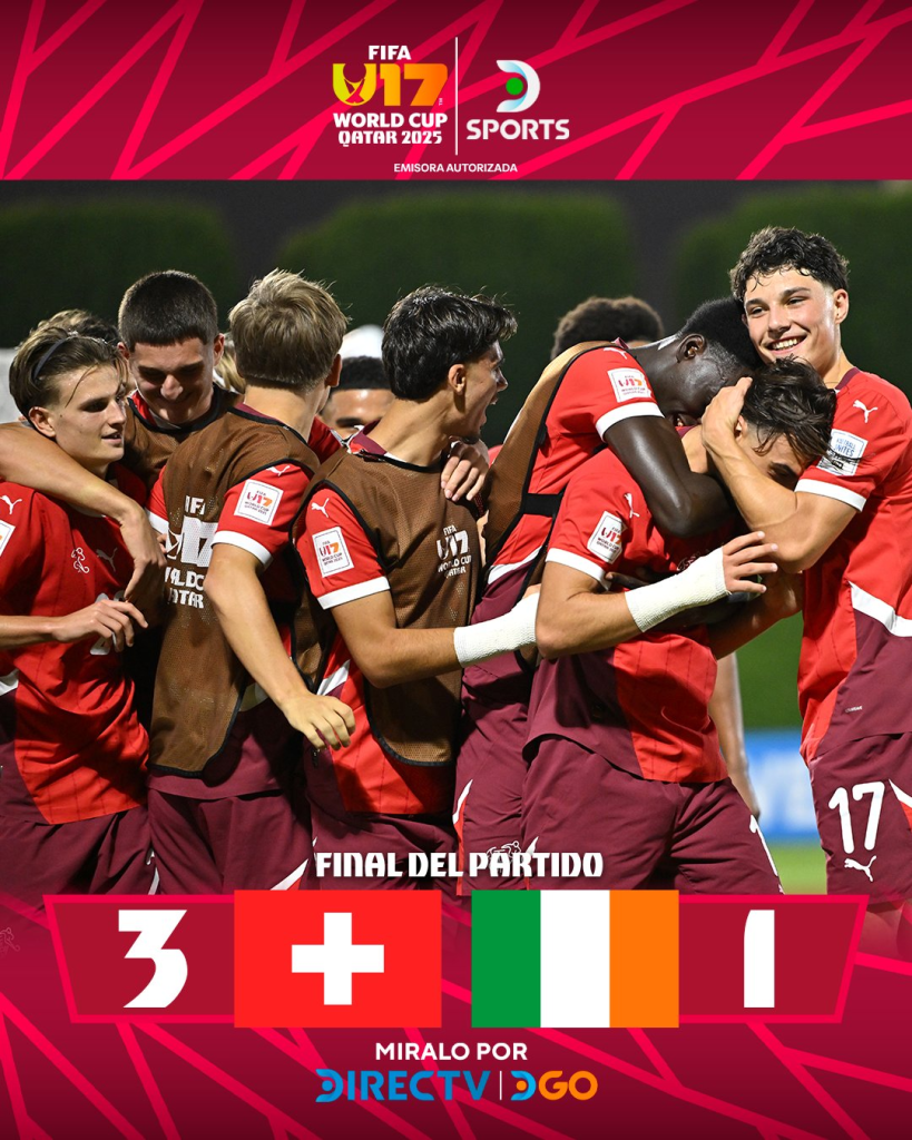 Suiza amplió a 12 partidos su notable racha sin perder en la Copa Mundial Sub-17 con una reñida victoria sobre la debutante República de Irlanda.Tras un primer tiempo igualado, los suizos se lanzaron rápidamente al ataque tras el descanso. Sandro Wyss dio un aviso al romper la defensa y estrellar el balón en el poste.