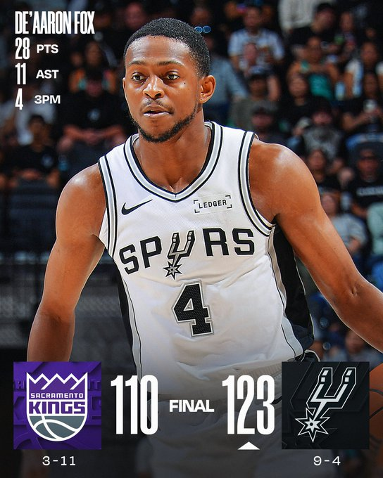 Continuamos con la victoria de los Spurs que, sin Victor Wembanyama, lograron derrotar a los Kings. De’Aaron Fox tomó protagonismo en su equipo y sumó un doble-doble de 28 puntos y 11 asistencias.