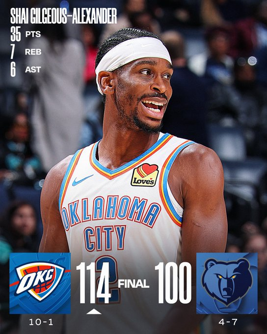 Oklahoma City Thunder 114 – 100 Memphis Grizzlies
