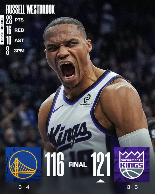 Russell Westbrook registró su triple-doble N°204 con 23 puntos, 16 rebotes y 10 asistencias, y Dennis Schroder fue decisivo con tres triples en el último cuarto. DeMar DeRozan lideró a Sacramento con 25. En los Warriors, Will Richard y Moses Moody brillaron con 30 y 28 respectivamente. Los Kings dieron vuelta un -15 en el tercer cuarto con un parcial de 18-2.