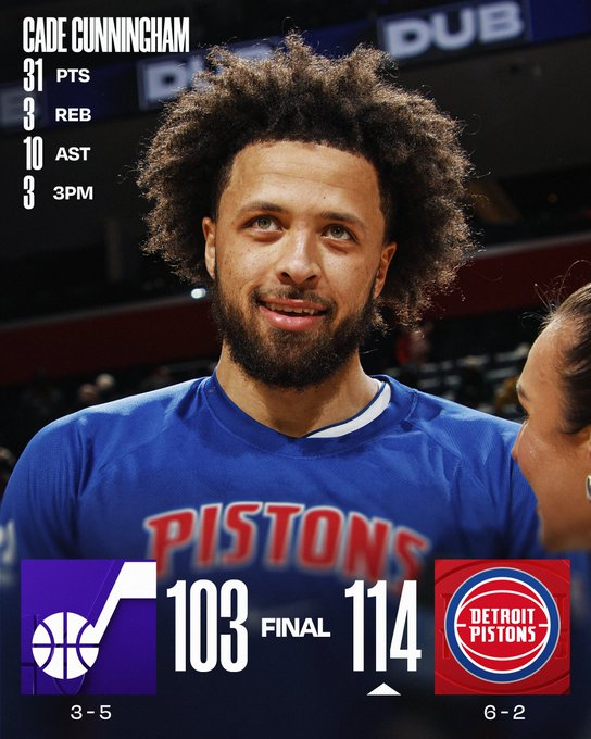 Cade Cunningham encendió el cierre con 19 de sus 31 puntos en el último cuarto para darle a Detroit su cuarta victoria seguida. Jalen Duren brilló con 22 puntos y 22 rebotes, mientras Ausar Thompson sumó 18. Svi Mykhailiuk, ex Piston, fue el máximo anotador del Jazz con 28 tantos. Los de Monty Williams dominaron el rebote (58-42) y sellaron el triunfo con un parcial de 13-0.