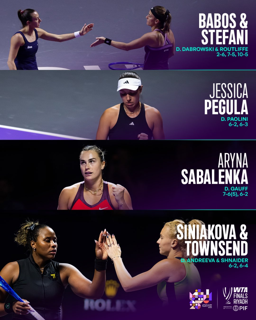 Las WTA Finals 2025, que se disputan por primera vez en Riad, continúan mostrando un alto nivel competitivo, con las cuatro mejores raquetas de la temporada listas para luchar por el último gran título del año.