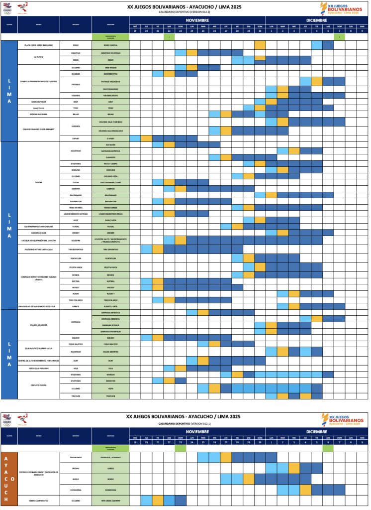 A continuación, te mostramos el Programa Deportivo de los XX Juegos Bolivarianos Lima Ayacucho 2025: