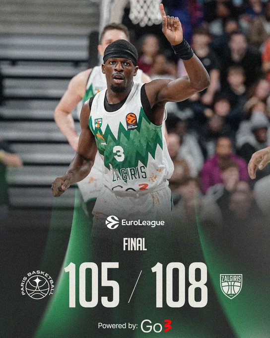 El Zalgiris consiguió una importante victoria para encarrilar su campaña al ganar un emocionante partido de ida y vuelta contra el Paris Basketball por 105-106 como visitante. En un partido con 19 cambios de liderato, el Paris llegó a tener una ventaja de 10 puntos en el segundo cuarto y el Zalgiris abrió su propia ventaja de 10 puntos con 81-91. El Paris respondió con los siguientes 10 puntos para empatar el partido, y después de que el Zalgiris se adelantara 95-102, el Paris contraatacó con los siguientes ocho puntos para el primero de cuatro cambios de ventaja en los últimos 59 segundos, con una bandeja en carrera de Azuolas Tubelis a los 11 segundos de ganar el partido.