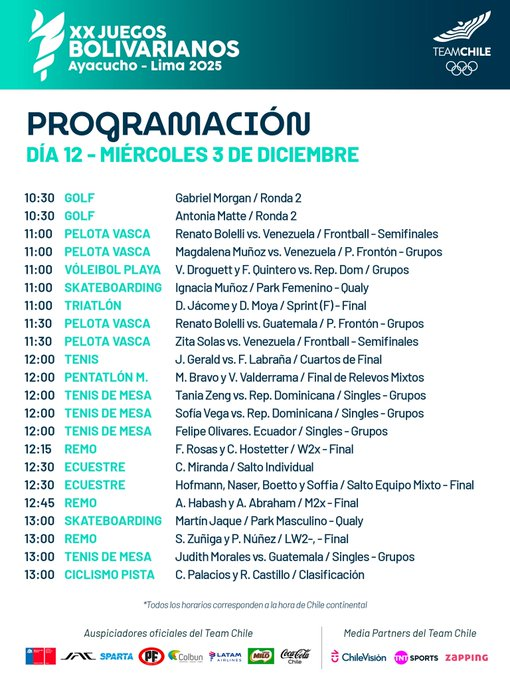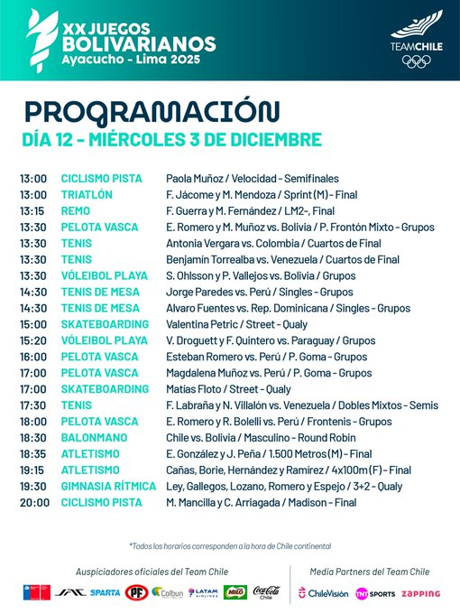 La “Selección Chilena de Todos los Deportes” alcanzó 110 medallas en los Juegos Bolivarianos Ayacucho – Lima tras la jornada de ayer martes, donde la delegación logró nueve metales (dos oros) y el número de triunfos llegó a 36, quedando a uno de la cifra lograda en Valledupar 2022.