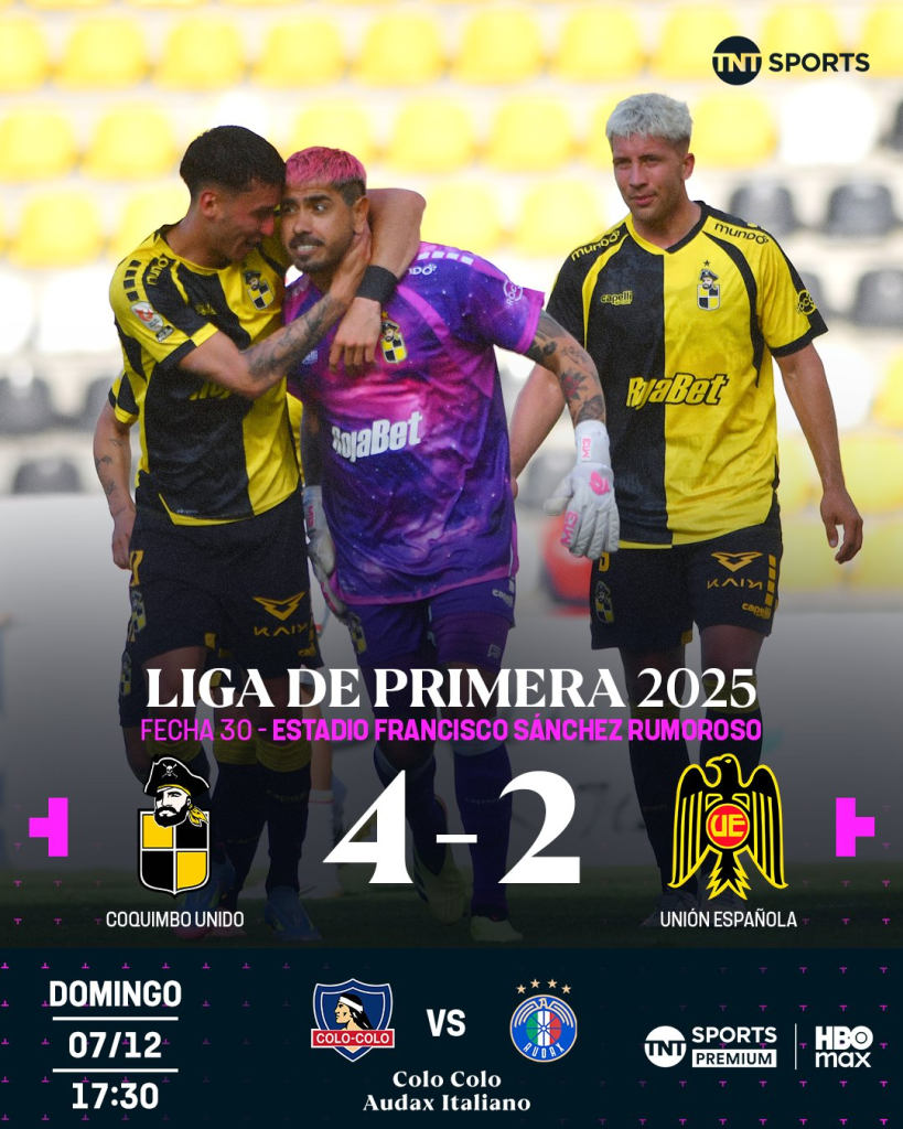 Por último, Coquimbo Unido celebró su consagración con un triunfo que resume su temporada: carácter, solidez, invicto y liderazgo. En la última jornada los «Piratas» derrotaron 4-2 Unión Española en el Estadio Francisco Sánchez Rumoroso.