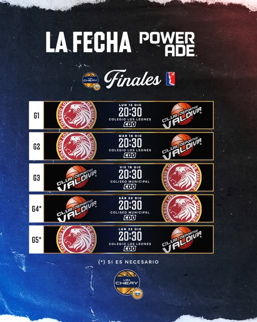 La Liga Chery by Cecinas Llanquihue está llegando a su fin en la temporada 2025 y a partir de hoy lunes 15 de diciembre, Los Leones de Quilpué y CD Valdivia buscarán el título nacional del básquetbol chileno.