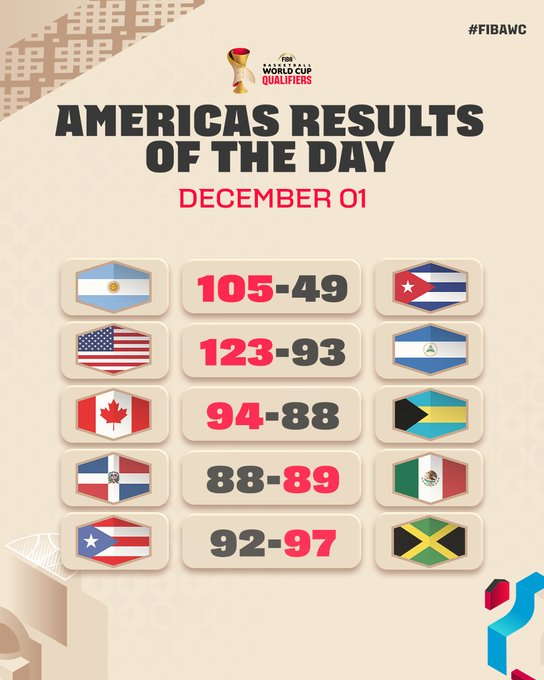 Además, se convirtió en el primer país en la historia de estos Clasificatorios en anotar 90+ puntos en sus dos primeros juegos. Puerto Rico (0-2) perdió por primera vez ambos juegos de una misma ventana de Clasificatorios. Había ganado 9 de sus últimos 10 partidos como local antes de esta serie ante Jamaica.